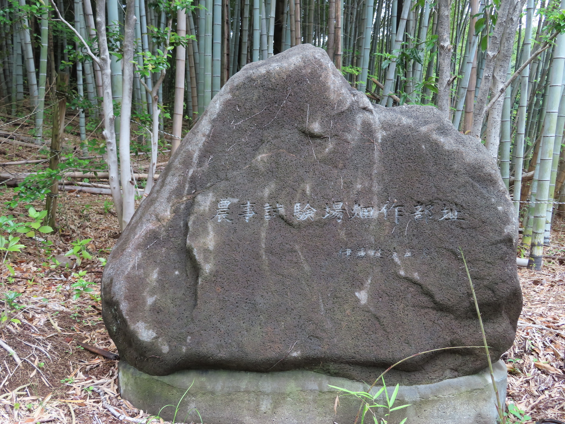 公園東端にある駐車場にクルマを停め,そこから先は徒歩で往復。駐車場入口付近には農事試験場畑作部址の碑がある。