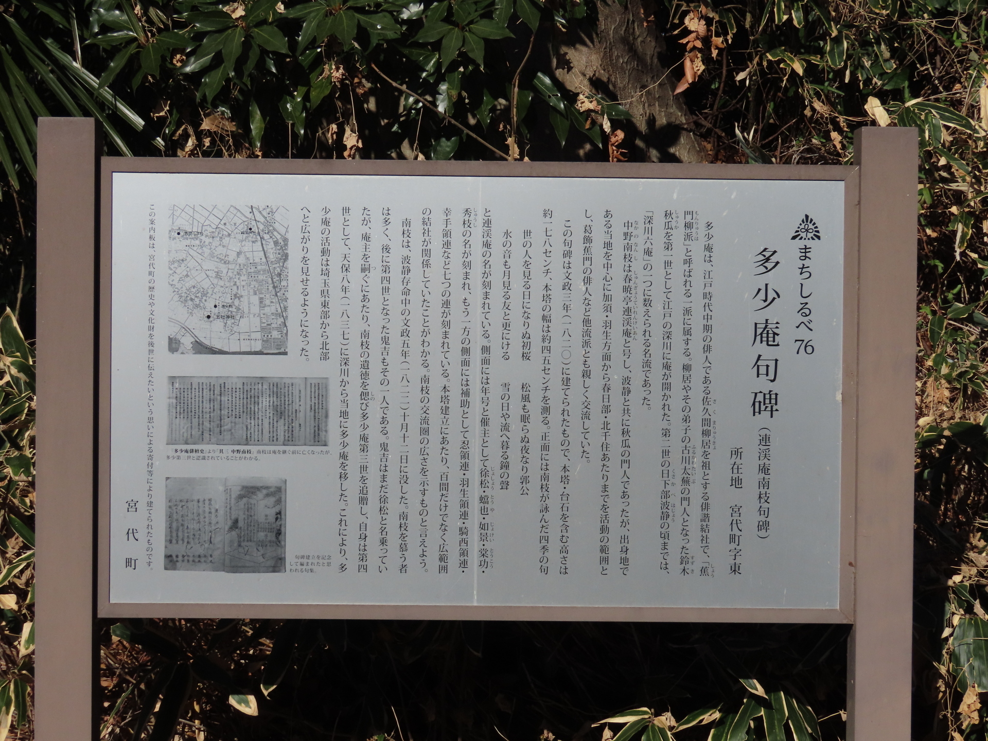 埼玉県宮代町:平成25年度 町指定文化財に多少庵関係の句碑と俳額を指定